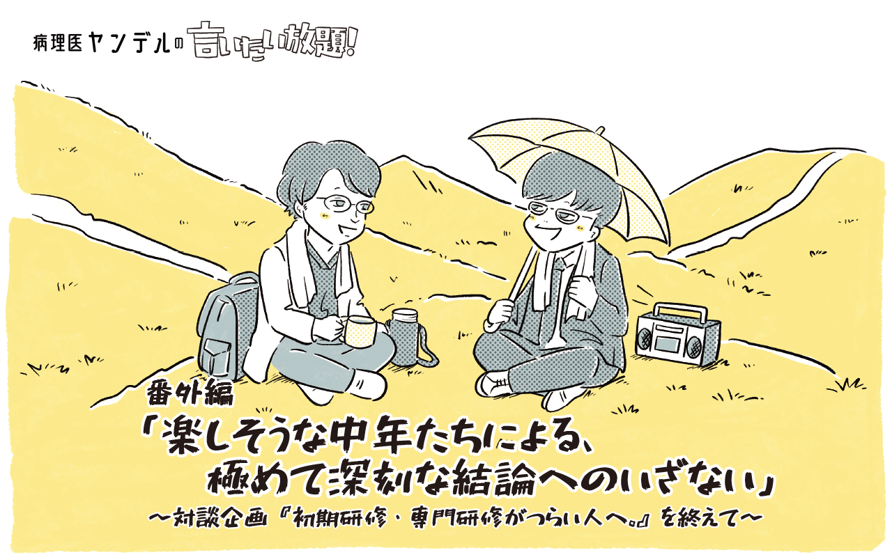 そんな鈴木先生と私、それぞれアプローチは違うのだけれど、最終的にはなんだか似たような場所にたどり着いているのも興味深い。初めにたくさんの問い。「研修医という立場を少しでもつらくないものにできるか」。「医師のトレーニングをなるべくラクにできないものか」。「トラウマをどう回避するか」。「自分なりに落ち着く方法とは何か」。これらの超絶ド真ん中命題に対し、私たちはそれぞれ異なる登山道から一気に山を駆け上り、同じ頂上にたどり着いた。