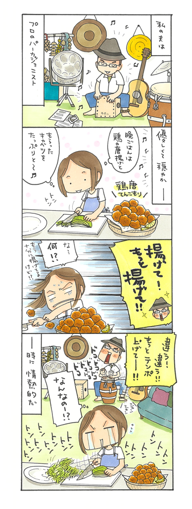 私の夫はプロのパーカッショニスト(打楽器奏者)。自分の楽曲を作って表現するほか、さまざまなアーティストのサポートとしてライブやレコーディングで演奏することをなりわいにしている。私とは全く違う世界で生きている。そんな私たちが、どこで出会えたのかというと、なんと海の中だ。40歳を目前にして結婚願望に諦めがつき、趣味であるダイビングを満喫していた頃の出来事であった。