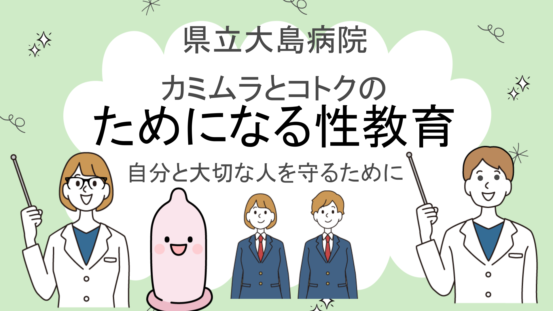 「自分と大切な人を守るために 県立大島病院カミムラとコトクの『ためになる性教育』」と題して、5月23日の県立大島高校を皮切りに、6月13日は県立古仁屋(こにや)高校、7月4日は県立北高校、そして7月11日は県立奄美高校で性教育を実施しました。