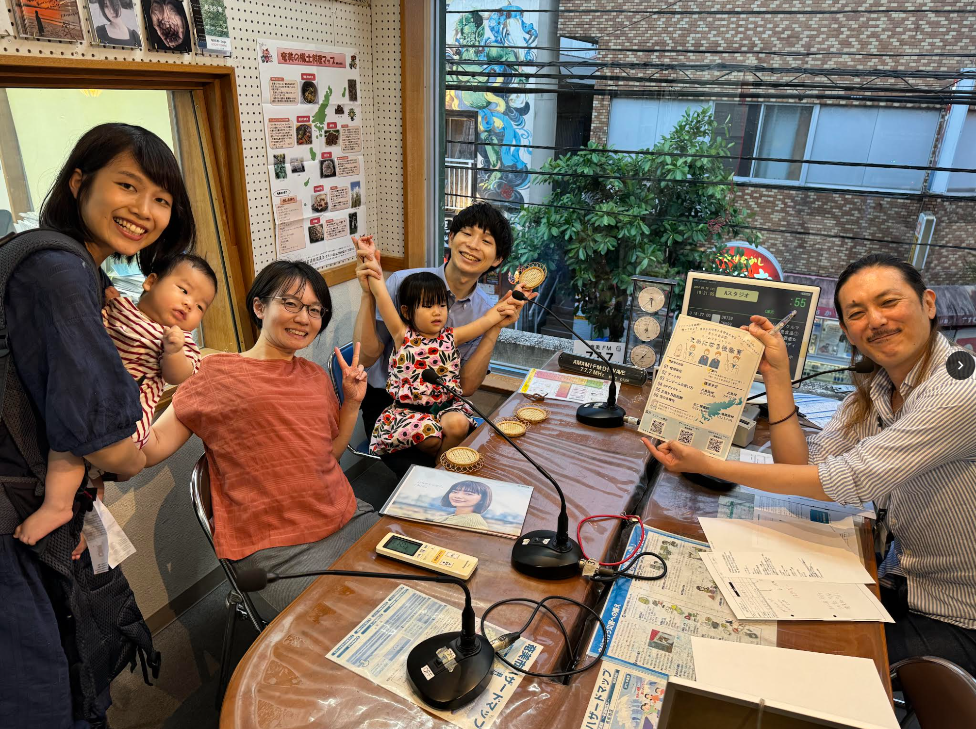 授業について、地元の「あまみFM」で宣伝!女性ヘルスケアが専門の上村えり医師(オレンジ色のシャツの女性)と一緒に出演しました=2024年5月