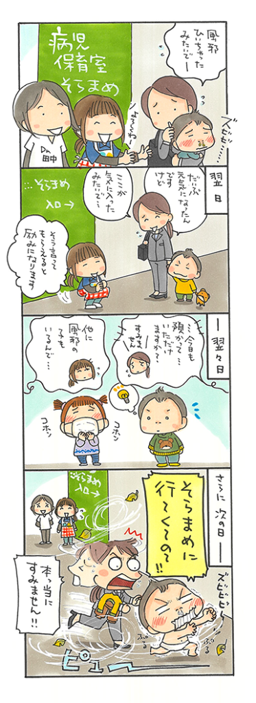 このような運営の難しさは「そらまめ」だけでなく、全国各地の病児・病後児保育施設で共通のものだ。行政サイドは、私たちの事情を聞いてはくれるが、利用者数に応じた助成の仕組みは変わらない。丁寧に保育し、他の子に違う疾患がうつらないように最大限に配慮しようとすると、大人数を預かることはできなくなり、満足のいく助成は得られない。当日キャンセルがあれば、その枠を生かすことは難しく、収入は減る。地域で必要とされているのにもかかわらず施設が増えていかないことに対して、実際に運営して初めて合点がいったのであった。