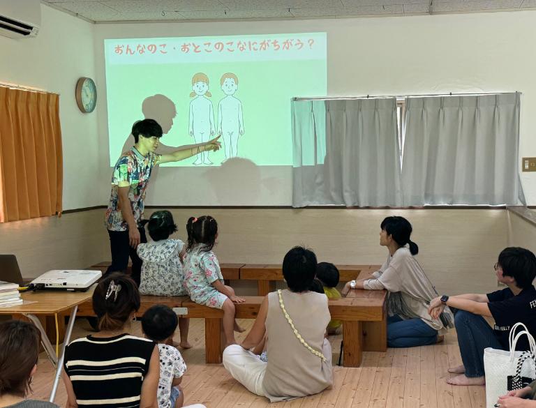 保育園で園児と保護者に「ジェンダー教育」をしました=奄美大島で2024年9月