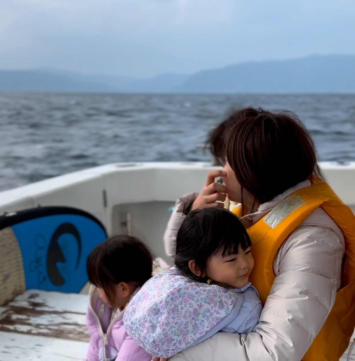 海風が冷たくて寒くても、子どもたちは船に乗れて楽しそうでした。ただ、僕らに会いに来てくれたのは、恥ずかしがり屋のクジラさんだったみたいです。船の近くでこっそりと息継ぎをするだけで、海面には顔を出してくれませんでした。バッシャンと豪快にブリーチング(水面に体を打ち付けること)をしたり、ブロー(潮吹き)をしたりする姿は、またの機会にお預けです!