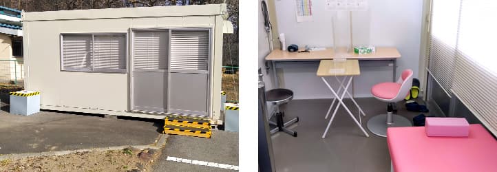その後、新たに中古のプレハブを購入し、10月からはそこで診ることにした。3畳ほどの空間に、空気清浄機、アクリル板、簡易ベッド、診察用机、検査用の机などを配置している。設備や動線は、吾妻保健福祉事務所の職員から「これなら大丈夫です」と太鼓判を押していただいており、今もこのプレハブで発熱患者を診ている。