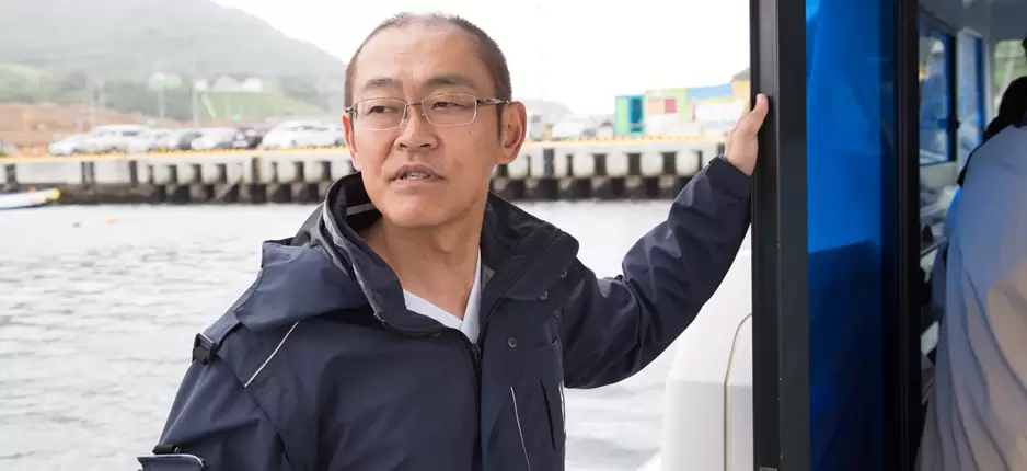 「町所有の船です。船舶免許は、町長に勧められて取得しました。仕事に必要で始めた船の操縦ですが、海上を走るのはとてもいい気分転換になります」
