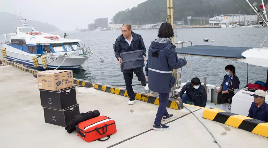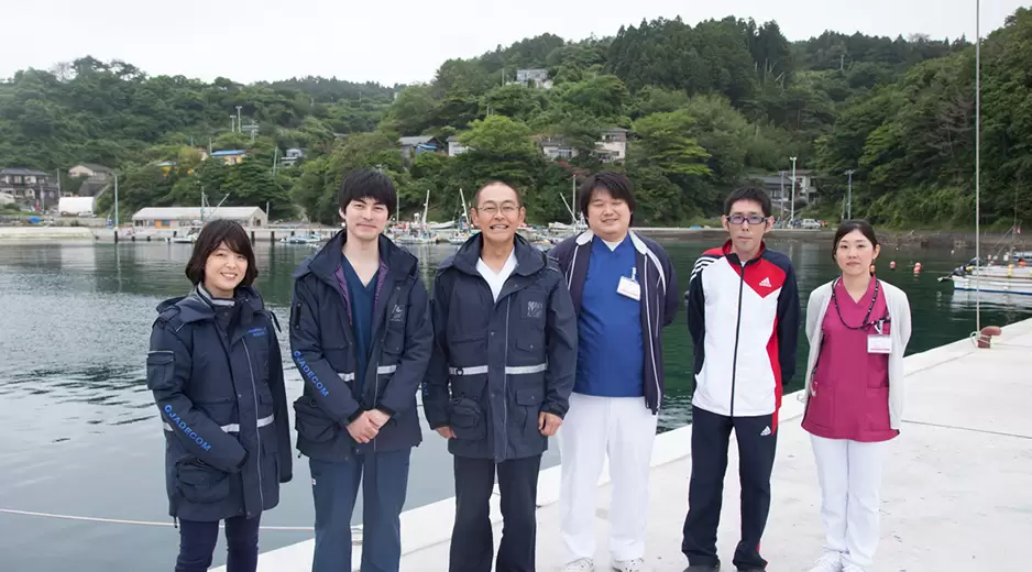 取材当日は、月に2回の離島への巡回診療の日だった。女川港から船で20分ほどの出島(いずしま)は、震災後に島の診療所が廃止されてしまった。齋藤氏は、研修医2名、看護師2名、事務スタッフ1名のチームを引き連れ、自らクルーザータイプの小型船を操って島に渡る。