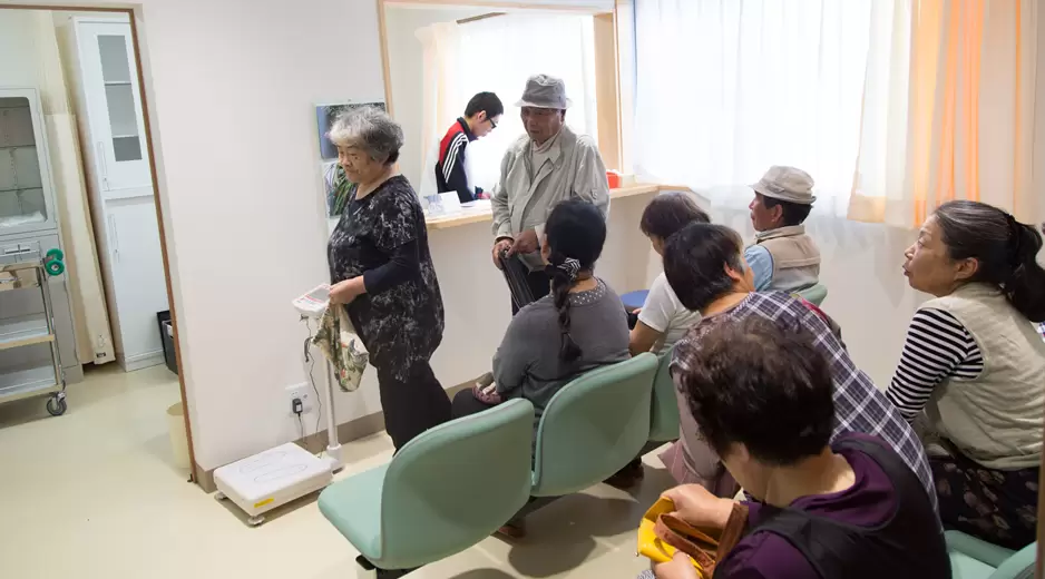 出張診療所の待合室には穏やかな空気が流れ、10数人の島民が思い思いに過ごしながら順番を待っている。皆、慢性疾患を抱えているからここにいるのだろうが、なぜか楽しそうだ。齋藤氏の言う、「そこにいてくれるだけで、安心だ」とはこういうことなのだろうと思った。