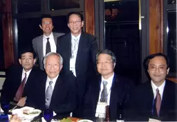 名古屋大学医学部のメンバーと韓国の学会にて (写真前列右から上坂氏、神谷順一先生(故)、二村雄次前教授、梛野正人・現名古屋大学大学院腫瘍外科教授、後列左は近藤哲(故)・前北海道大学教授)