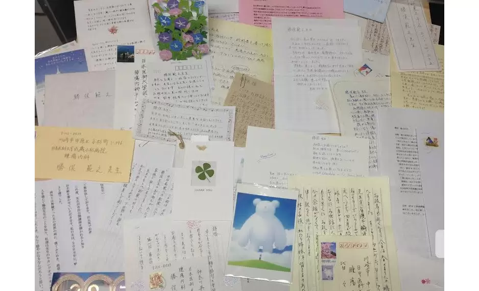 勝俣先生の宝物(患者さんからの直筆の手紙)。手紙はすべて捨てないで取ってあるとのこと