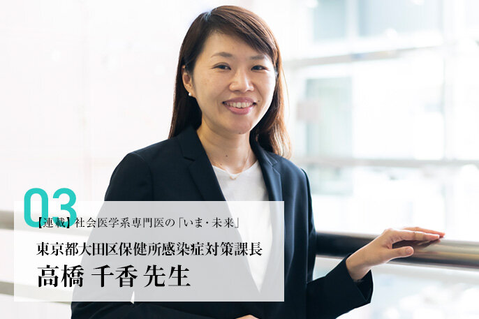 しかし、それでもなお、保健所という行政組織の中で働く医師が平時にどんな役割を担っているか、毎日どんな覚悟を持って働いているかは、意外に知られていないのではないでしょうか。今回は、日本のコロナ対策の最前線に立つ、東京都大田区保健所感染症対策課長の高橋千香先生に登場いただきます。インタビューは2020年の盛夏、区の新型コロナ対策会議の合間を縫って行われました。