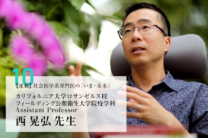 これらの研究を手がけた張本人が、米国カリフォルニア大学ロサンゼルス校(UCLA)フィールディング公衆衛生大学院で疫学分野のAssistant Professorを務める西晃弘先生です。話を伺い、キャリアの足跡をたどることで、研究者としての葛藤や、社会医学の存在意義が見えてきました。