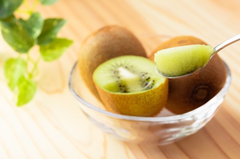 キウイフルーツは、皮付きでも皮なしでも、問題ないとのこと。キウイフルーツに含まれる繊維が便の量を増やし、腸のぜん動運動(収縮)を促すといいます。また、キウイフルーツは腸内の水分量を増加させ、便を柔らかくする可能性も期待されています。