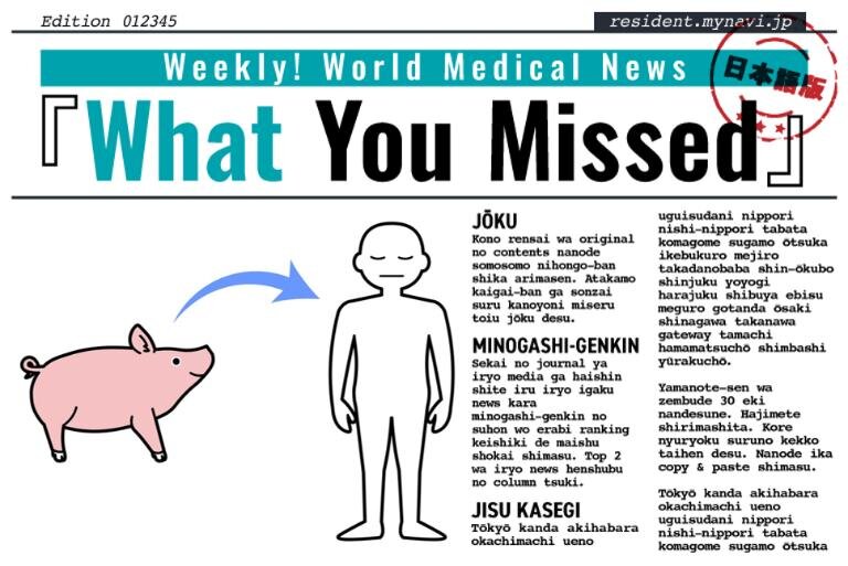 ブタの腎臓を移植の女性が順調に回復 最長記録の「2カ月」経過▽「軽く一杯」では寝つき良くならず…▽超多剤耐性菌に有効なのは、なんと「カキの血」!?▽敗血症のメカニズムが判明!