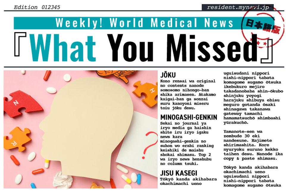 世界の医学誌や科学誌に掲載された論文、大手メディアや医療メディアが配信している医療・医学ニュースから「見逃し厳禁」の数本を選び、ランキング形式で毎週紹介します。トップには医療ニュース編集部の記者のコラム付き。なお、『What You Missed』は日本語版しか存在しません。今回は3月20日~26日にDOCTORの『サクッと1分!世界の医療ニュース』に掲載した記事の中から最も注目の集まったニュース4本を紹介します。