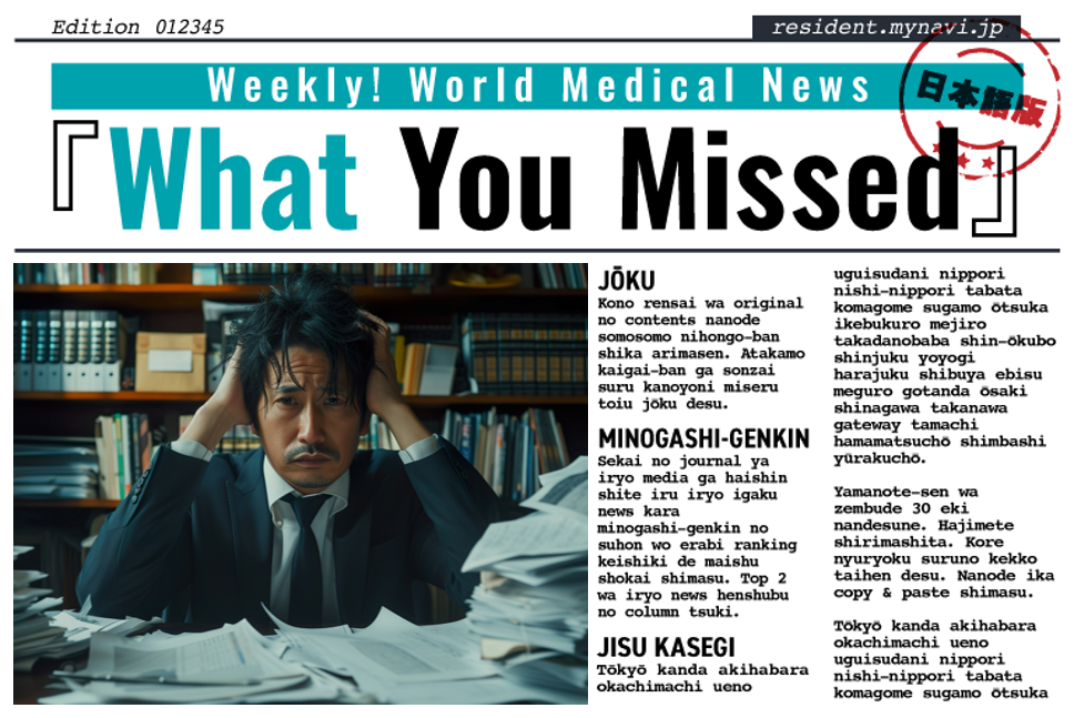 世界の医学誌や科学誌に掲載された論文、大手メディアや医療メディアが配信している医療・医学ニュースから「見逃し厳禁」の数本を選び、ランキング形式で毎週紹介します。トップには医療ニュース編集部の記者のコラム付き。なお、『What You Missed』は日本語版しか存在しません。今回は5月15~21日にDOCTORの『サクッと1分!世界の医療ニュース』に掲載した記事の中から最も注目の集まったニュース4本を紹介します。