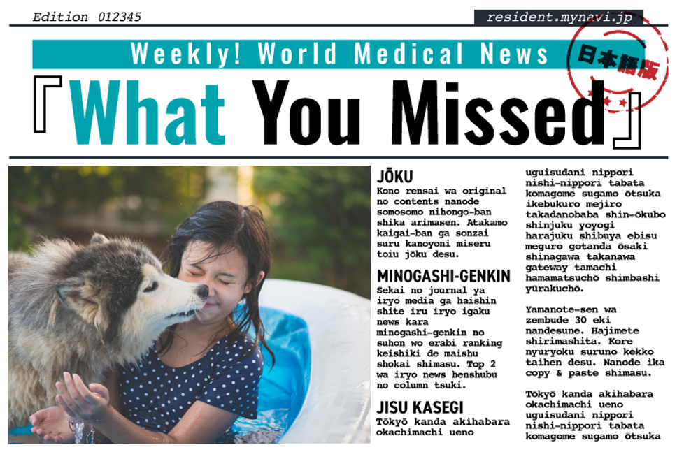 世界の医学誌や科学誌に掲載された論文、大手メディアや医療メディアが配信している医療・医学ニュースの中から「見逃し厳禁」のものを選び、医療ニュース編集部の記者のコラムを付けて毎週お届けします。今回は5月28日~6月25日にマイナビDOCTORの『サクッと1分!世界の医療ニュース』に掲載した記事の中から「犬を飼うことのメリット」についてのニュースを取り上げ、過去の関連記事3本を紹介します。なお、『What You Missed』は日本語版しか存在しません。
